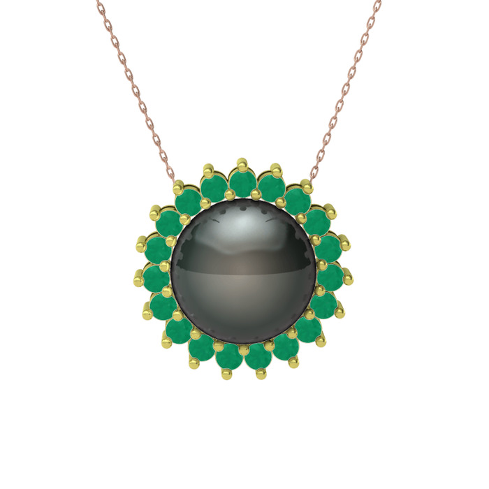 Siyah inci ve kök zümrüt 925 ayar altın kaplama gümüş kolye (40 cm rose altın rolo zincir)