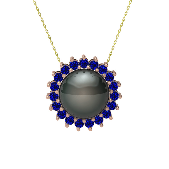 Siyah inci ve lab safir 8 ayar rose altın kolye (40 cm altın rolo zincir)