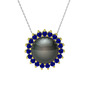 Siyah inci ve lab safir 925 ayar altın kaplama gümüş kolye (40 cm beyaz altın rolo zincir)