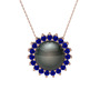 Siyah inci ve lab safir 925 ayar rose altın kaplama gümüş kolye (40 cm gümüş rolo zincir)