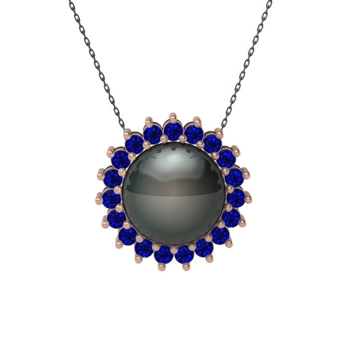 Siyah inci ve lab safir 925 ayar rose altın kaplama gümüş kolye (40 cm gümüş rolo zincir)