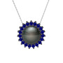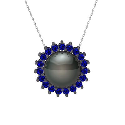 Siyah inci ve lab safir 925 ayar siyah rodyum kaplama gümüş kolye (40 cm beyaz altın rolo zincir)