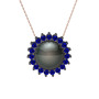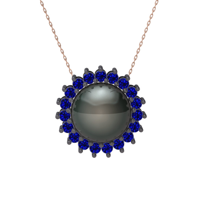Siyah inci ve lab safir 925 ayar siyah rodyum kaplama gümüş kolye (40 cm rose altın rolo zincir)