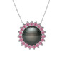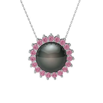 Siyah inci ve pembe kuvars 14 ayar beyaz altın kolye (40 cm beyaz altın rolo zincir)