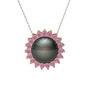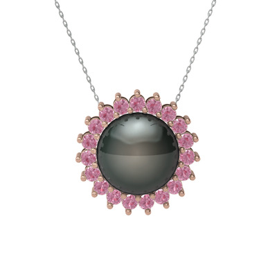 Siyah inci ve pembe kuvars 14 ayar rose altın kolye (40 cm beyaz altın rolo zincir)