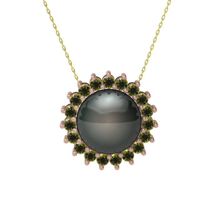 Siyah inci ve peridot 14 ayar rose altın kolye (40 cm altın rolo zincir)