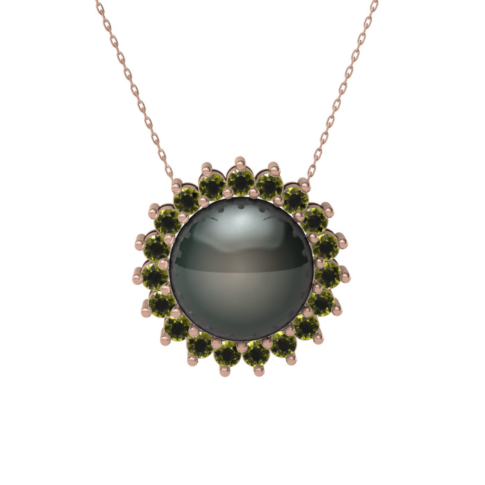 Siyah inci ve peridot 14 ayar rose altın kolye (40 cm rose altın rolo zincir)