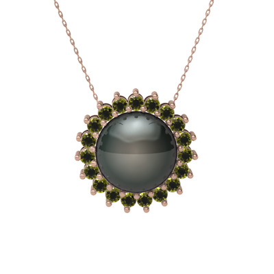 Siyah inci ve peridot 18 ayar rose altın kolye (40 cm rose altın rolo zincir)