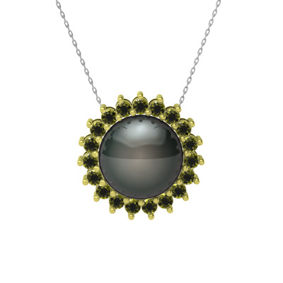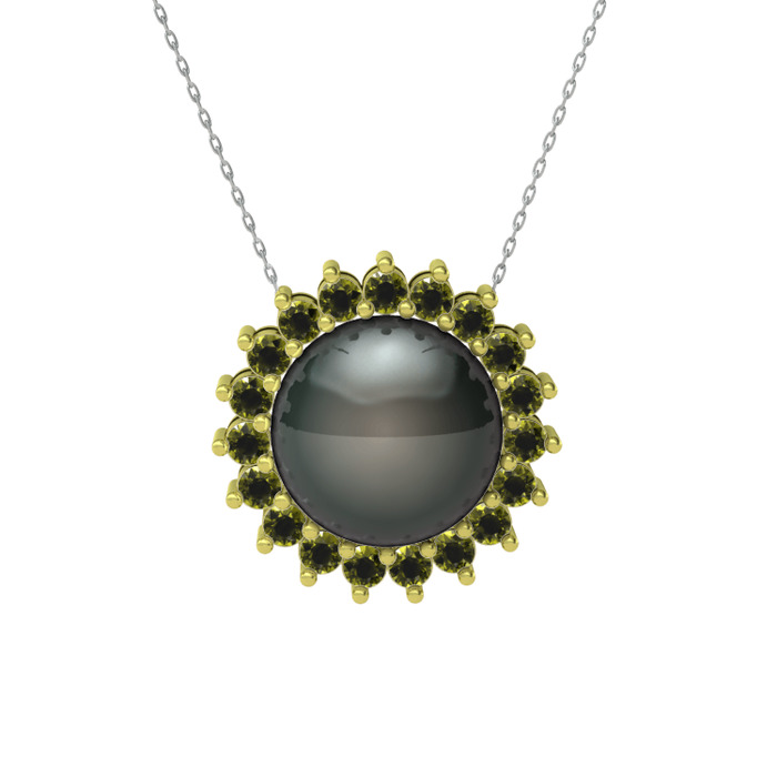 Siyah inci ve peridot 8 ayar altın kolye (40 cm beyaz altın rolo zincir)