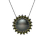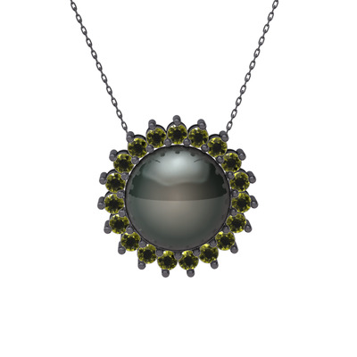 Siyah inci ve peridot 925 ayar siyah rodyum kaplama gümüş kolye (40 cm gümüş rolo zincir)