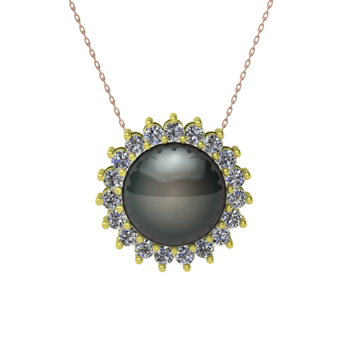 Siyah inci ve pırlanta 14 ayar altın kolye (0.285 karat, 40 cm rose altın rolo zincir)