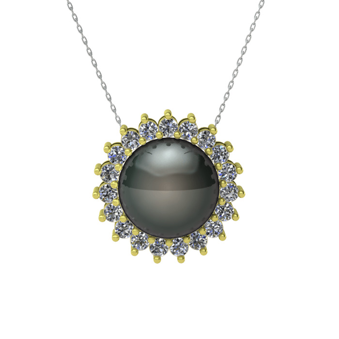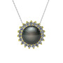 Siyah inci ve pırlanta 18 ayar altın kolye (0.285 karat, 40 cm beyaz altın rolo zincir)