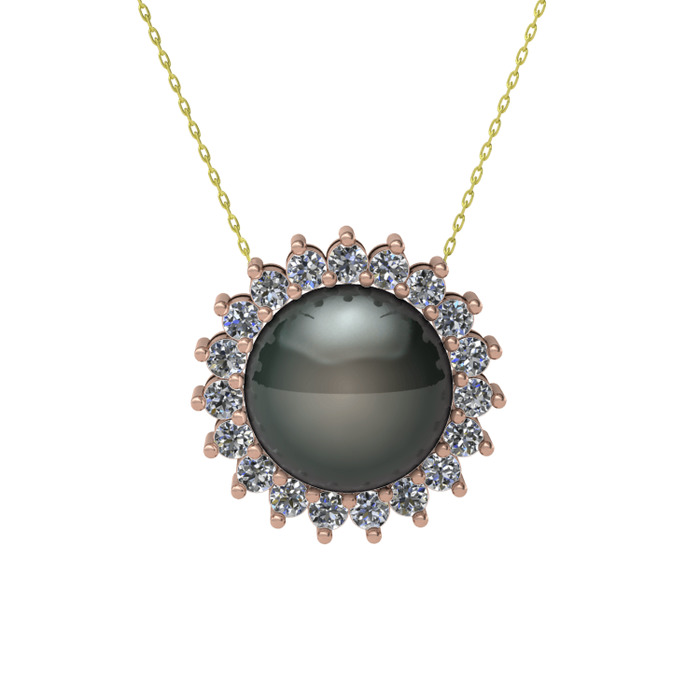 Siyah inci ve pırlanta 18 ayar rose altın kolye (0.285 karat, 40 cm altın rolo zincir)