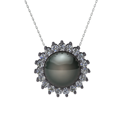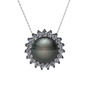 Siyah inci ve pırlanta 925 ayar siyah rodyum kaplama gümüş kolye (0.285 karat, 40 cm beyaz altın rolo zincir)