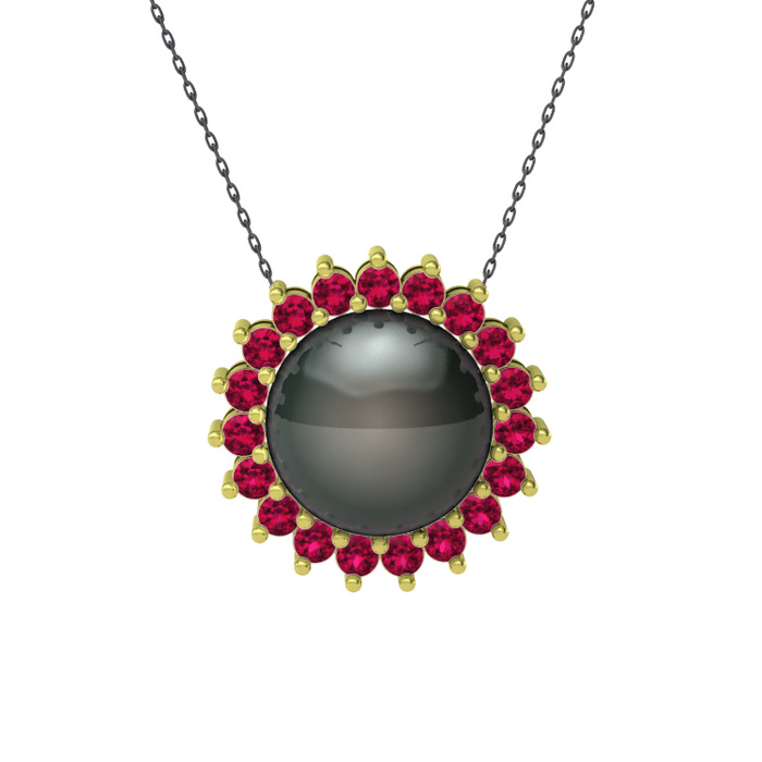 Siyah inci ve rodolit garnet 14 ayar altın kolye (40 cm gümüş rolo zincir)