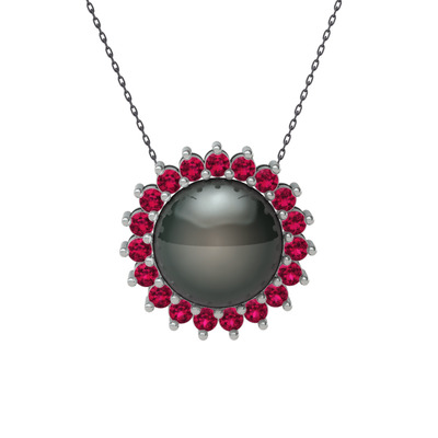 Siyah inci ve rodolit garnet 925 ayar gümüş kolye (40 cm gümüş rolo zincir)