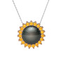 Siyah inci ve sitrin 18 ayar rose altın kolye (40 cm beyaz altın rolo zincir)