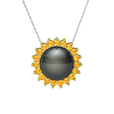 Siyah inci ve sitrin 8 ayar altın kolye (40 cm beyaz altın rolo zincir)