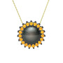 Siyah inci ve sitrin 925 ayar siyah rodyum kaplama gümüş kolye (40 cm altın rolo zincir)