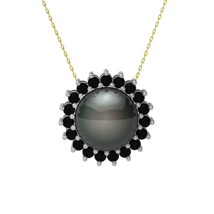 Siyah inci ve siyah zirkon 8 ayar beyaz altın kolye (40 cm altın rolo zincir)