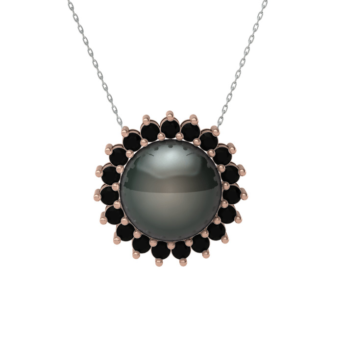 Siyah inci ve siyah zirkon 925 ayar rose altın kaplama gümüş kolye (40 cm beyaz altın rolo zincir)
