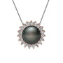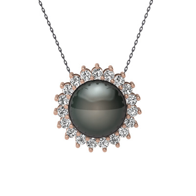 Siyah inci ve swarovski 18 ayar rose altın kolye (40 cm gümüş rolo zincir)