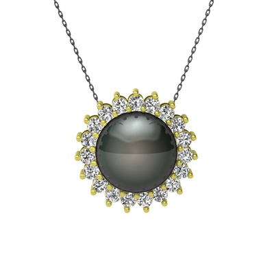 Siyah inci ve swarovski 925 ayar altın kaplama gümüş kolye (40 cm gümüş rolo zincir)