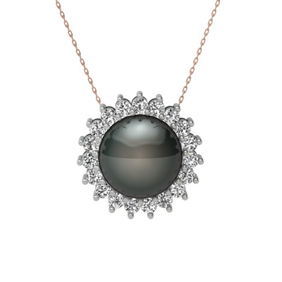Siyah inci ve swarovski 925 ayar gümüş kolye (40 cm rose altın rolo zincir)