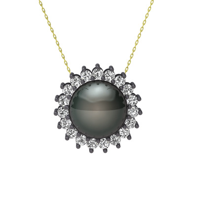 Siyah inci ve swarovski 925 ayar siyah rodyum kaplama gümüş kolye (40 cm altın rolo zincir)