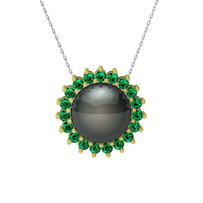 Siyah inci ve yeşil kuvars 18 ayar altın kolye (40 cm beyaz altın rolo zincir)