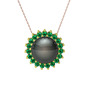 Siyah inci ve yeşil kuvars 8 ayar altın kolye (40 cm rose altın rolo zincir)