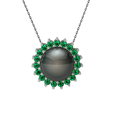 Siyah inci ve yeşil kuvars 8 ayar beyaz altın kolye (40 cm gümüş rolo zincir)