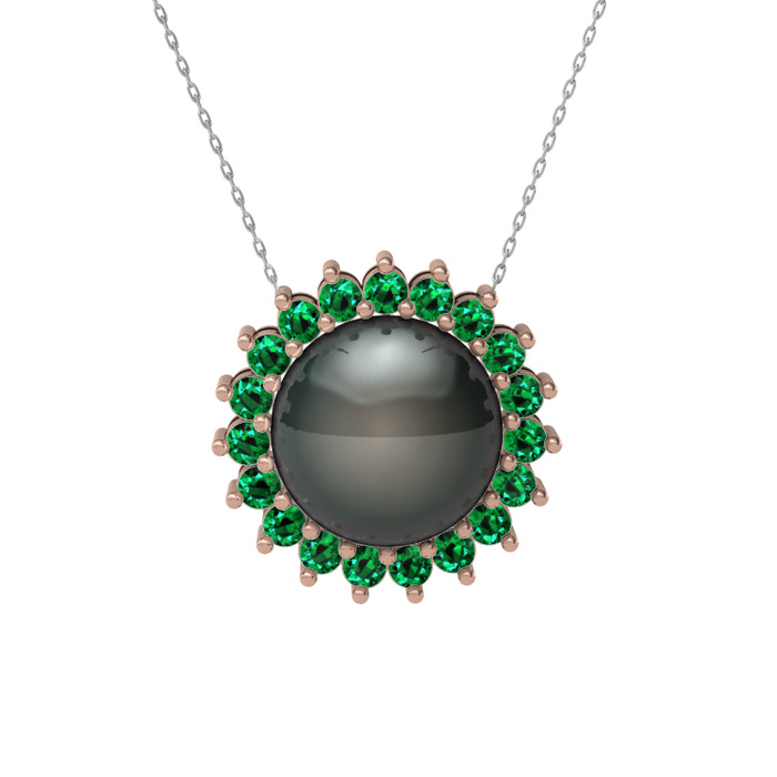 Siyah inci ve yeşil kuvars 8 ayar rose altın kolye (40 cm beyaz altın rolo zincir)