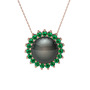 Siyah inci ve yeşil kuvars 8 ayar rose altın kolye (40 cm rose altın rolo zincir)