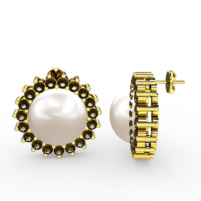 Inci ve dumanlı kuvars 8 ayar altın küpe
