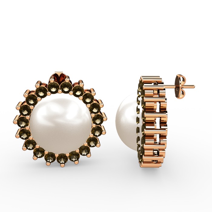 Inci ve dumanlı kuvars 925 ayar rose altın kaplama gümüş küpe