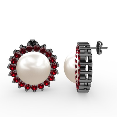 Inci ve garnet 925 ayar siyah rodyum kaplama gümüş küpe