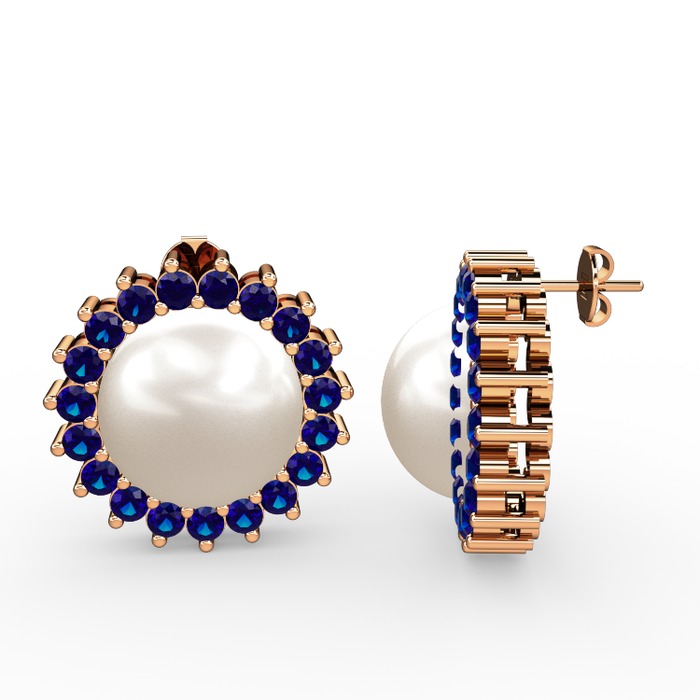 Inci ve lab safir 8 ayar rose altın küpe