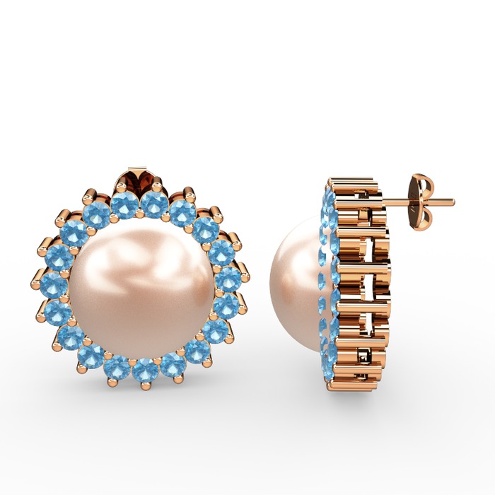 Pembe inci ve akuamarin 18 ayar rose altın küpe