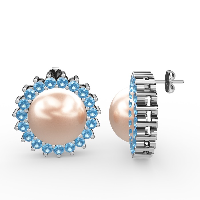 Pembe inci ve akuamarin 8 ayar beyaz altın küpe