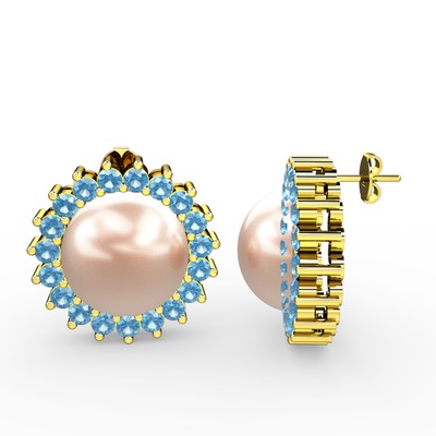 Pembe inci ve akuamarin 925 ayar altın kaplama gümüş küpe