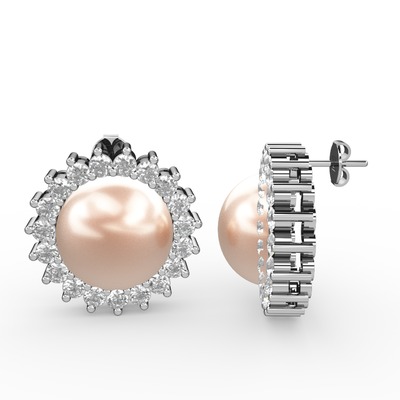 Pembe inci ve pırlanta 18 ayar beyaz altın küpe (0.57 karat)