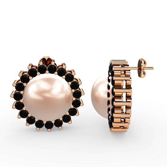 Pembe inci ve siyah zirkon 8 ayar rose altın küpe