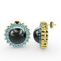 Siyah inci ve akuamarin 18 ayar altın küpe