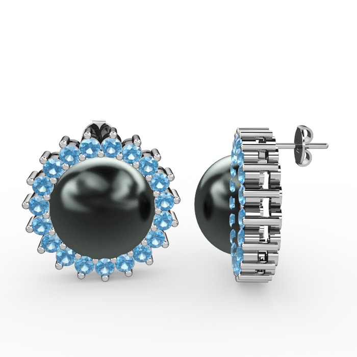 Siyah inci ve akuamarin 18 ayar beyaz altın küpe