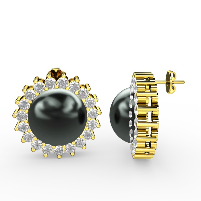 Siyah inci ve beyaz zirkon 925 ayar altın kaplama gümüş küpe