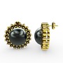 Siyah inci ve dumanlı kuvars 14 ayar altın küpe