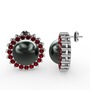 Siyah inci ve garnet 18 ayar beyaz altın küpe