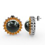 Siyah inci ve sitrin 925 ayar gümüş küpe