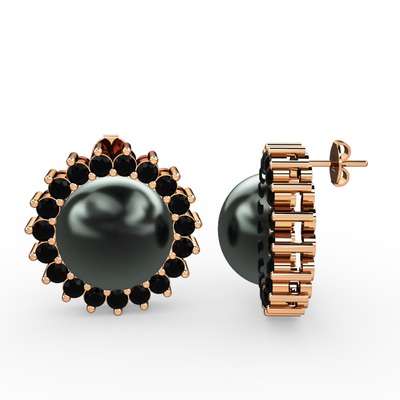 Siyah inci ve siyah zirkon 14 ayar rose altın küpe